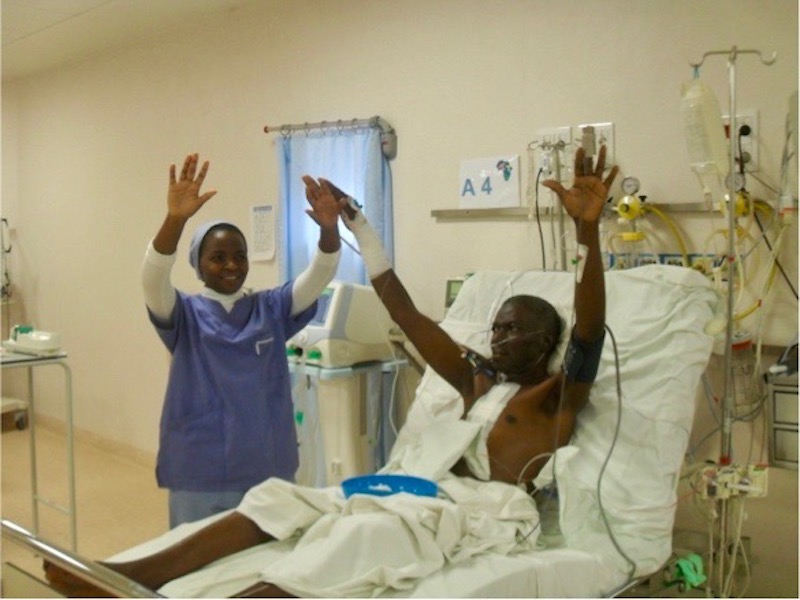 On March 26, 2018, Djoulde has been operated by Dr. Charles Mvondo and his team successfully! As you can see on the picture, Djoulde already started in the ICU with cardiovascular training. Djoulde recovered very well from the procedure and was able to return to his family 14 days later.