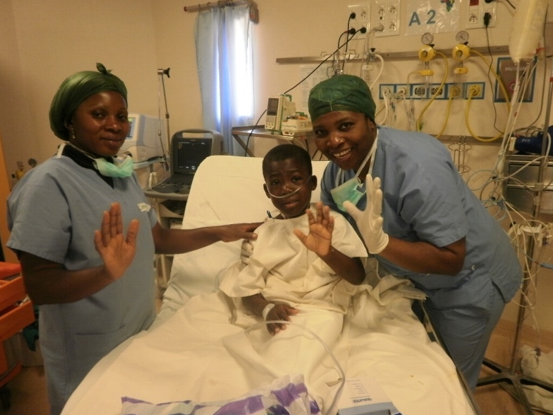 Es ist geschafft! Dr. Charles Mvondo und sein Team haben mit Erfolg im Februar 2015 den Herzscheidewand-Defekt behoben, welcher Karl so viele Schwierigkeiten bereitet hat. Das Foto wurde eigens für die MI-DO Spendengemeinschaft angefertigt, um Sie liebe Wohltäter zu grüßen und Ihnen zu danken! Nach einem komplikationslosen Aufenthalt ist Karl nun wieder zu Hause in Yaoundè bei seiner Mutter.